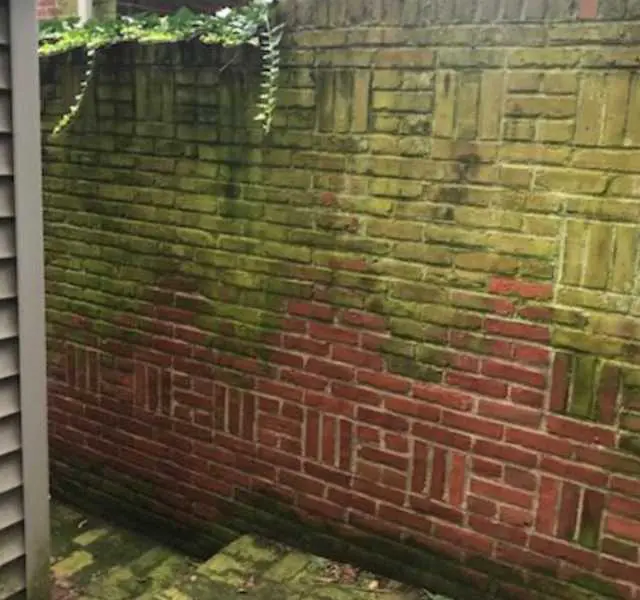The green algae and mildew found growing on homes throughout Virginia can actually begin to deteriorate the surface it's growing on if not removed in a timely manner. It can sometimes be very difficult to remove (especially if it's been left for a long time) and makes your home look very dirty. This unsightly algae growth is especially prevalent in areas where there is lots of moisture, little sunlight or sometimes, just enough sunlight to encourage it's growth.